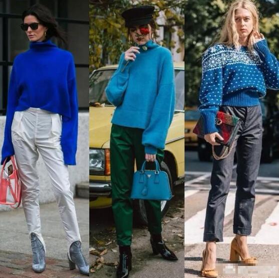 蓝色毛衣怎么搭配裤子和裙子