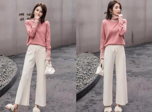 阔腿裤的版型可以说是一年四季都好多女生喜欢穿的,而且是针织的材质,厚实又显气质,米白色又是那么的显高级感,修饰腿型又很显瘦的设计,配上九分的长度,整体穿上身才够时髦显高挑,搭配毛毛平底鞋,属于是拖鞋的版型,是不是与这个春天更搭呢?舒适又好看。