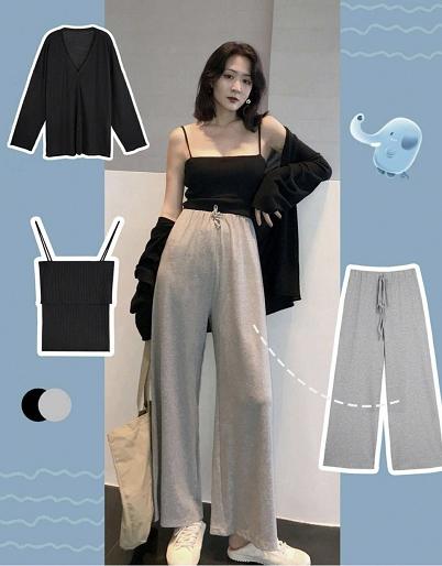 走路带风的一条裤子,而且舒适度和美观度都是超赞的,还有一点点随性慵懒。小腿粗的女生就可以选择这种版型的裤子了,逐渐开阔的裤腿可以显得大腿更细,而且包容度也是极强的。上身搭配略微紧身的衣服,像这天灰色的裤子最好就是搭配黑色的上衣会显得更瘦哦。