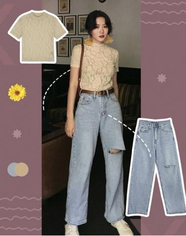 这款泫雅风的牛仔裤真的是超级修饰下半身的一件神器了,挺括的版型可以把粗腿通通都藏起来,尤其适合哪种整条腿都粗的女生哦,大腿粗、小腿粗、脚踝也粗,都可以完美的遮挡到,超长的裤腿和高腰也是巨显高的,百搭不挑人的一条裤子。上身可随意搭配一件T恤,任何风格都很适合哦。男装搭配!