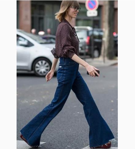 喇叭裤从膝盖以下逐渐张开,对于小腿线条的修饰可以说是相当的完美了,绝对是很多小腿粗的女生首选款式,这种超长的喇叭裤但凡是谁穿都会化身逆天长腿精,裤腿够长的话可以再穿一双高跟鞋,把高跟鞋的高度藏起来就变得更加高挑了。上衣可以选择舒适度比较高的雪纺衬衫,把衣服别进裤子里面,显得整体人都超级有气质哦。