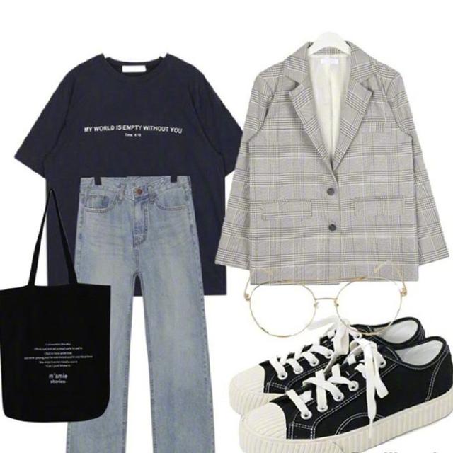 如果你想要提升气质,那么这套西装褂加帆布鞋的穿搭便很适合你选择。西装褂规整的版型可以修饰女生的身材线条,一个好的身材在一定程度上也能够起到提升气质的作用,单薄的面料也很适合早春选择。内搭一款T恤可以使女生不失活力少女感,看似随意的搭配却很具高级时尚感。下搭一款直筒牛仔裤可以很好地修饰女生的腿部线条,显瘦且显腿长,搭配帆布鞋很具减龄感,黑色帆布鞋也能与黑色T恤相呼应,黑色显瘦且百搭。上班族以及学生党都是可以选择的。