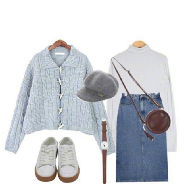 帆布鞋虽是很具青春感的单品,但它搭配裙装时也是毫无突兀感的,牛仔短裙的清新与其相呼应,针织衫和打底衣的搭配亦不失温婉感,打底衣的修身遇上针织衫的宽松,便会很显瘦。手表以及贝雷帽的搭配为造型增添了高级时尚感,亦很具大家小姐的气质感,这身搭配很适合外出游玩时选择了,很具清新脱俗感,定会吸睛感满满。