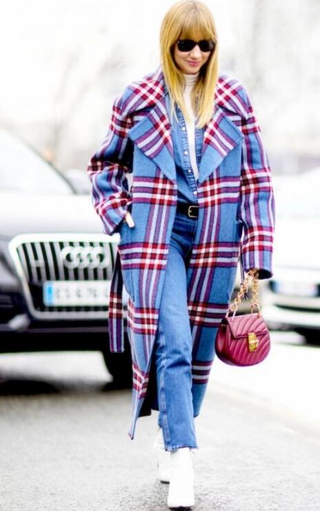 格纹元素是永不过时的,尽显浓郁英伦风气息,很是加分哦!打造当下chic范,当蓝色格纹大衣,遇上白色小高领,洒脱又不失甜美气质,散发高雅气息。下装选择加分牛仔裤,以及白色短靴,打造典雅街头范,你学会了吗?