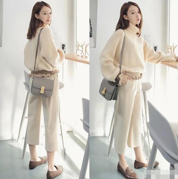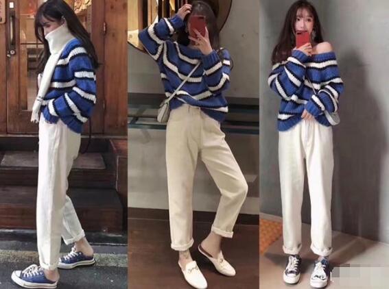 毛衣搭配长裤,这是非常随性又时尚的穿法,尤其对于小个子女生来说,宽松的毛衣搭配高腰裤,是非常有利于显高的,而且这种基础款搭配也非常容易选择外套,长款的风衣或者大衣都OK,是可以从秋天一直穿到冬天的搭配,时尚又实用。