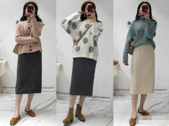 针织元素在今年可是非常的流行,毛衣搭配针织半身裙,怎么搭配都是女人味十足,裙子颜色推荐大地色系,黑灰卡其棕色都可以哦!