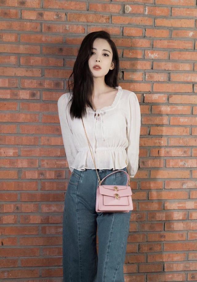 白色上衣和牛仔裤的搭配,是四季通用的搭配方法。娜扎的这身穿搭就是既简洁但又非常大方,不管是上班族还是学生党都可以借鉴。