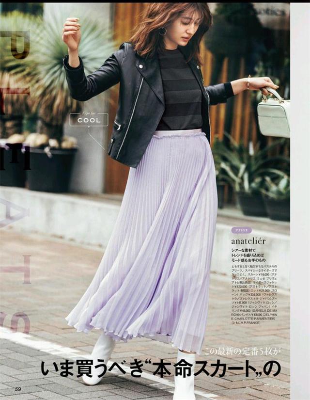 初春时节挡风的皮衣将是你最好的伙伴,不仅帅气有型而且耐脏又实用,关键是可以省去清洗的麻烦,最适合简单生活的美女。短款皮衣从不挑剔身材、性格,只要热爱,它都能帮你实现帅气时髦的摩登气质。图中的小姐姐身穿黑色短款皮衣,简单的西装款式干练又洒脱,搭配一款超有女人味的浅紫色百褶裙,刚柔的碰撞,瞬间燃起时髦的火花。随着裙摆轻轻的飞扬像是弹奏着浪漫的情歌。