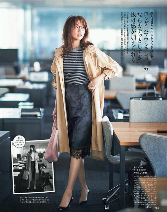 若是喜欢优雅风的女生,一款漂亮的包臀裙能够充分展示女性柔美的韵味。图中的小姐姐利用驼色风衣搭配黑色的直筒裙,典雅又大气。这款风衣的样式没有上一款风衣的线条那样简洁利落,领口以及腰身采用了抽绳的设计,褶皱的形成会增添一些柔美的韵味。内搭的高腰包臀裙轻易打造出协调的身材比例,将黑白相间的圆领针织塞进裙子里,更能够显高显瘦。裙长过膝给人一种端庄稳重的女人味,裙边加入的蕾丝花边更显得精致有味道,脚踩黑色浅口高跟鞋,小女人的妩媚不知不觉中弥散开来。