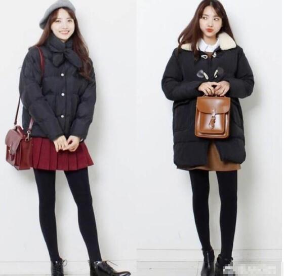 或者搭配短款的裙子或者裤子也是不错的,比如黑色短裤羽绒服搭配及大腿的百褶短裙,搭配小皮鞋,修饰腿型又显高,利用兔毛围巾点缀,再佩戴一定贝雷帽,可爱少女风。
