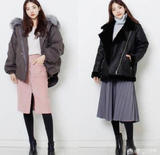 长款大衣虽然拉风,但也不是人人都能驾驭的,倒不如尝试一下短款外套+半身裙,比如秋冬季节人手一件的短款羽绒服,搭配开叉毛呢半裙,或者百褶半裙,配上黑色裸靴,当然,还少不了黑色的打底袜,简单又时髦。