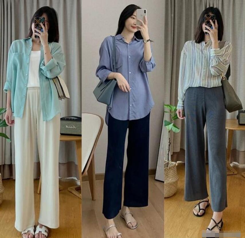 衬衫可是春夏季节的必备搭配单品了,百搭实用的它无论怎么搭配都可以气质又好看。选择一件特别小清新的浅蓝色衬衫,内搭一件白色小吊带,下身再搭配一条高腰款式的杏色丝绒裤,干净又清新的配色,穿出清爽又舒适的感觉。选择深蓝色衬衫搭配黑色丝绒裤同样很好看,整套搭配更显得优雅又气质,作为职场穿搭很是不错。丝绒裤配什么上衣图片?最后一套利用清新的条纹衬衫搭配灰色丝绒裤,穿出特别清新气质的味道。