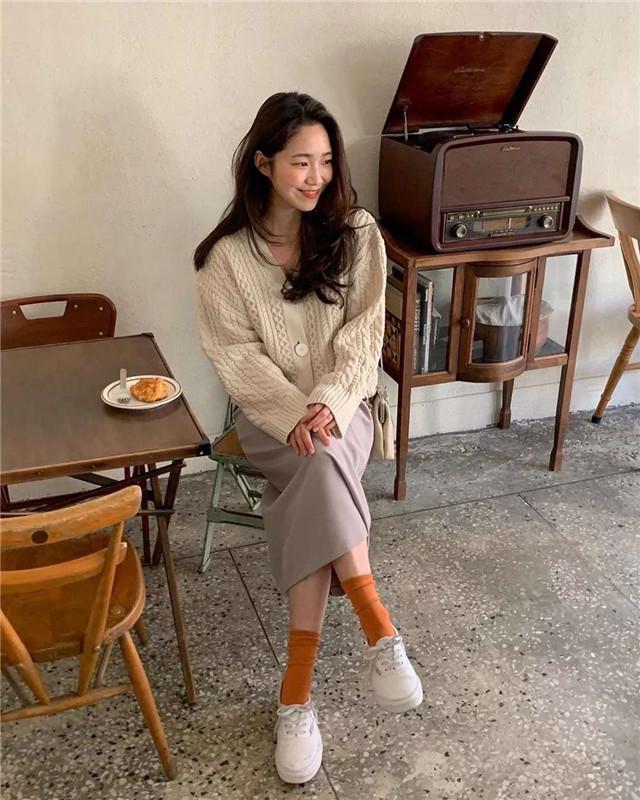 选择穿件短款的奶奶衫搭配条高腰的半身裙,会显腿长。净面的奶奶衫搭配同色系的印花裙,有一股法式的浪漫气息,优雅、漂亮极了。粗线的奶奶衫看起来更有质感,开衫的设计,穿起来更为随意,搭配件高腰连衣裙,这样的穿搭最适合出游、逛街时穿了,不懂得挑选裙子的女人,可以穿条净面的裙子。