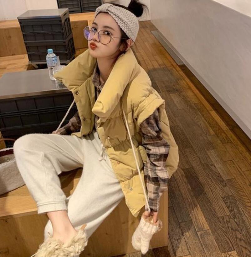 冬季外套的挑选可不能专宠一种款式,羽绒服马甲也是特别时髦的一种穿搭了。这件米黄色的羽绒服马甲,看起来蓬松而又柔软,可以在里面搭配一件格子衬衫,下半身套上一件白色的休闲裤,就是很日常的一种打扮了。如果是近视的女生可以把厚重的黑框眼镜换成轻巧的小圆框眼镜,效果会更棒。