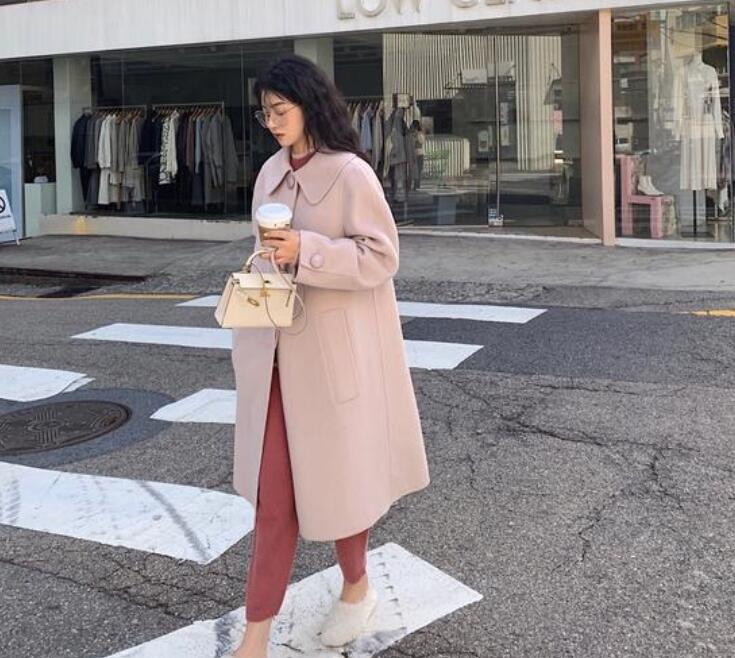 在北方挨冻的人不能体会南方只需穿一件呢子大衣就能够起到很好保暖效果的快乐。这件藕粉色的呢子大衣,颜色比较清新淡雅,不会让人产生视觉上的不适感或是刺激感,整体而言能够打造出大方而又得体的气质。在下半身可以选择一条桃粉色的裤裤,修饰腿型的同时还可以减龄不少。