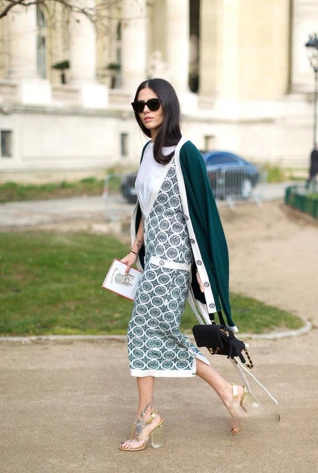 如果是随着气温逐渐回暖,我们自然是可以选择隐形靴去搭配短款的连衣裙啦!带有黑色底纹修饰的高跟的隐形靴本就酷炫十足,搭配上短款的连衣裙,瞬间让你气场全开!而且身材较好的女生们,这样穿还全以延长双腿的线条,让你看起来更加高挑别致。2020年的春天这样穿,走在街上疯狂提升回头率!
