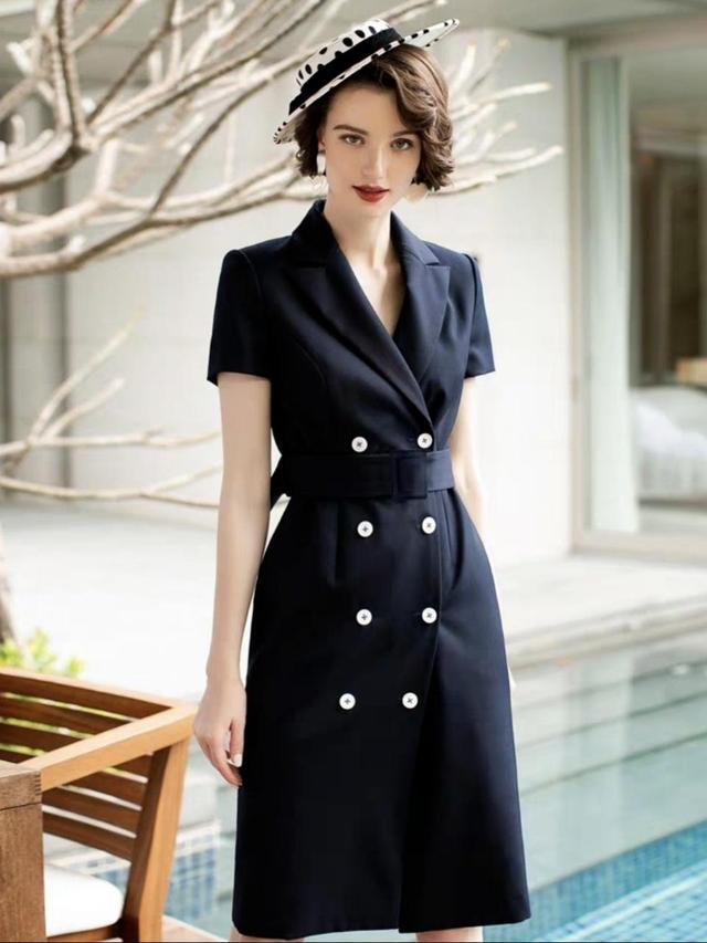 这种衣服带有双排扣,时尚而且很精致,西式的下摆设计很显身材的版型,很漂亮、很显身材。特别是在正式场合穿这种衣服,搭配一双高跟鞋,很有职场女性的气质。