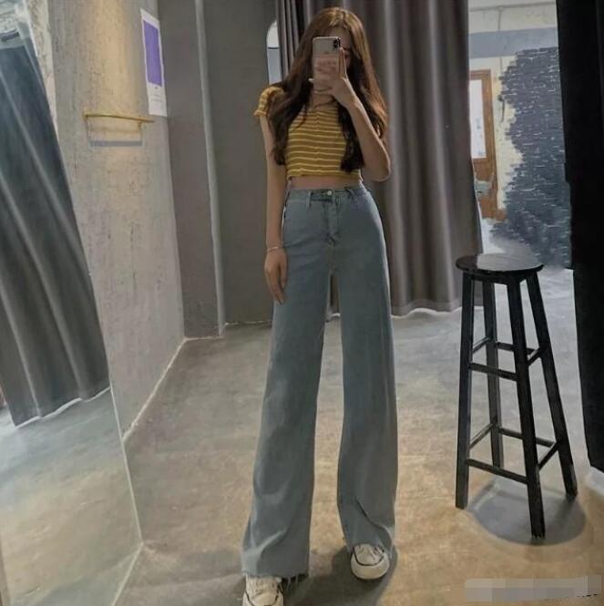 牛仔阔腿裤也是遮肉显瘦显腿直的种子选手,上面也说了腿部条件不好的人最好选择版型挺括宽松的裤子,这样可以完美的把缺点都藏起来。今天选择的这条牛仔阔腿裤版型简单,整体是宽松直筒的版型,但是到小腿部分微微外扩,呈现喇叭裤的样子,视觉上感觉腿又长又直。夏天穿牛仔裤干净又清爽。搭配的这件条纹短上衣也是比较有特色显身材的,首先大圆领和方领一样显瘦显脸小,同时还可以突出锁骨和天鹅颈,所以圆脸的人是比较适合穿露肤度高的上衣。还有就是细条纹上身也是比较显瘦的,不会纵向拉宽身材,比竖条纹和横条纹都显瘦,同时也更好看。长度刚好在肚脐以上,达到缩短上半身拉长下半身的目的,重点就是突出小蛮腰和大长腿,显腿直。脚踩帆布鞋休闲又时髦,如果是小个子女生可以把平底帆布鞋换成厚底的,增高效果max。