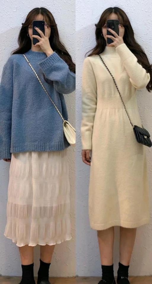 在秋冬季,宽松韩版毛衣搭配半身裙是常见的。微胖女孩切记,上衣一定要选择宽松的韩版毛衣,微胖女生一般手臂上都胖乎乎的,宽松的韩版毛衣可以很好地遮盖胳膊上的肉肉,下身选择同色系的半身裙或者是其他鲜艳的颜色也是可以的。微胖的女生对于半身裙的长度也是要有选择的哦!千万不要让自己身体缺点被衣服展现出来,学会这些穿搭,你的肉肉别人再也看不到喽!