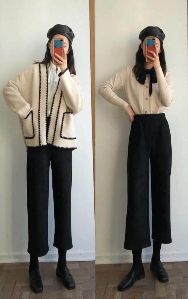 黑色直筒裤对于小个子女生是很友好的,穿上它搭配白色拼接外套或者是单穿一个米白色针织衫,收腰的同时,是特别显瘦的哦!