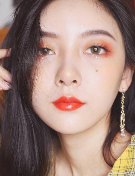 橘色系妆容是在去游乐场或者是朋友聚会的时候比较适合的妆容,显得元气十足活力满满。相信这样活力四射的女生都会有很多人愿意和她交朋友吧!眼影就是橘色系的先浓后淡慢慢晕染,之后再结合整体的妆感搭配就可以了。