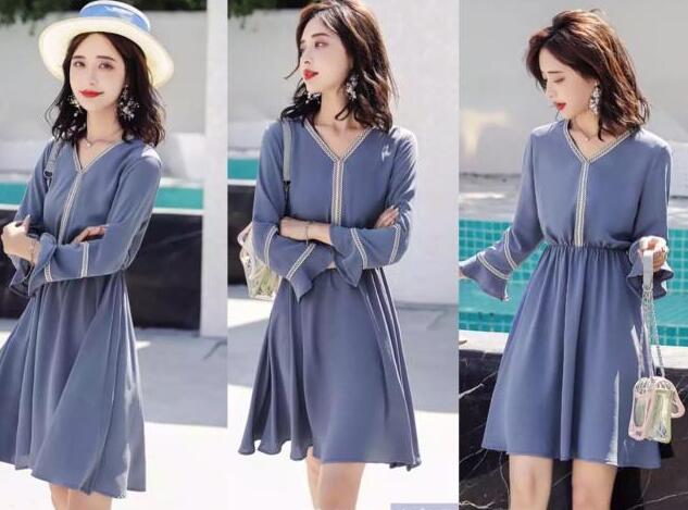 2019年流行什么蓝色裙子款式过时的裙子就别穿了,穿多了黑白色的裙子也会很乏味吧,那就来试试2019年很流行的“雾霾蓝”连衣裙,低调又显气质,好看极了。