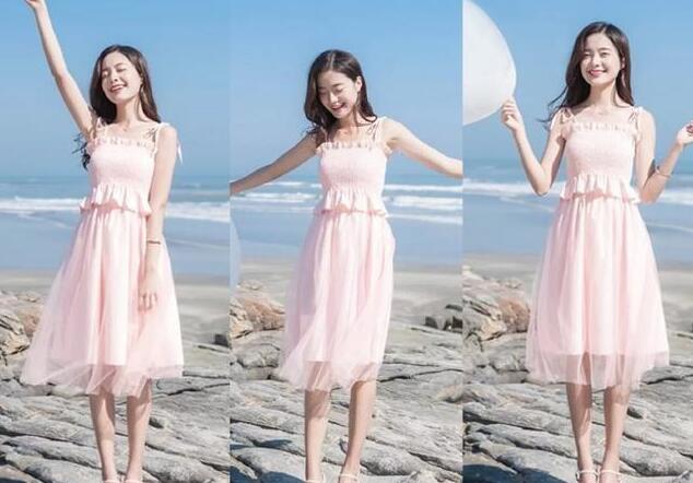 这条樱花粉吊带网纱连衣裙,一定是你春季不可错过的单品,也是今年超流行的款式呢,随随便便穿出街就超美,粉色的颜色让你看起来更甜美,裹胸的设计很有少女感,脚上选择一字带的平底凉鞋来搭配,可以完美拉长你的小细腿,穿出了高挑身材,真的美极了。