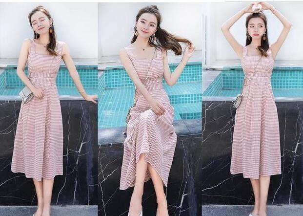 温柔“樱花粉色”吊带连衣裙,清爽感与甜美感的结合,格子元素的结合,显得甜美感十足,还是淡粉色系的裙子,是今年超流行的款式,可以完美将你的淑女气质展现出来,搭配宽松的下摆,飘逸又灵动,过膝的款式,敲仙美,搭配白色平底奶奶鞋,美不止一点点!整体搭配很仙+很美!