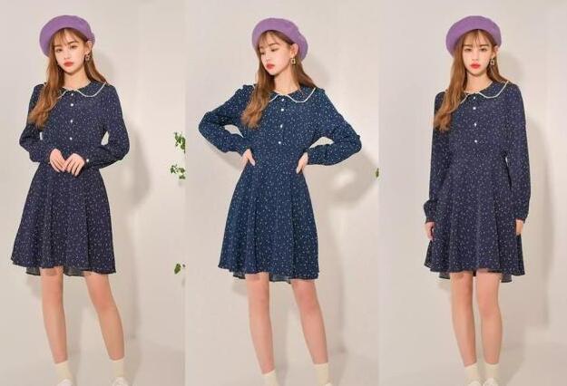 这款藏蓝色设计的波点连衣裙,好看又迷人,自带复古气息的裙子,宽松的大裙摆,穿起来飘逸又好看,更好地遮掩你身上多余的肉肉,显瘦效果超赞,荷叶边的衣领更添加几分甜美感,中长款的长度小个子的妹子也可以驾驭,脚上再搭配一双干净的小白鞋,尽显小女生的甜美气质,美多了。什么样的平底鞋配裙子好看