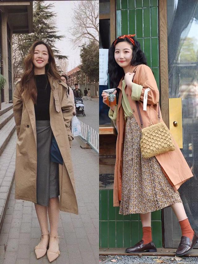 在选择半身裙时,要根据材质来选择长度。如果是轻盈的材质如蕾丝等,比风衣长一些的话,会更显优雅。漏出的裙边,随着走路的步伐,轻轻摇曳,吸晴又洋气,尽显随性自然感!反之,则短一些会更显干练利落哦!
