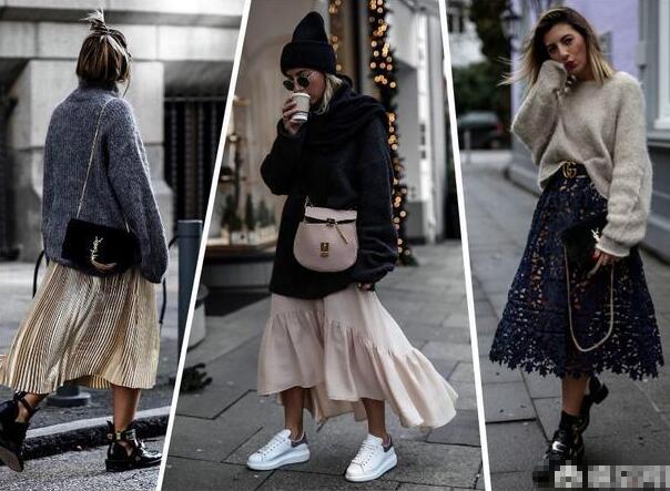 不喜欢上面那种风格?这个时尚博主教你毛衣+裙子也能穿出酷酷的风,穿腻了常规的裙子,偶尔来两件不规则的也很不错~