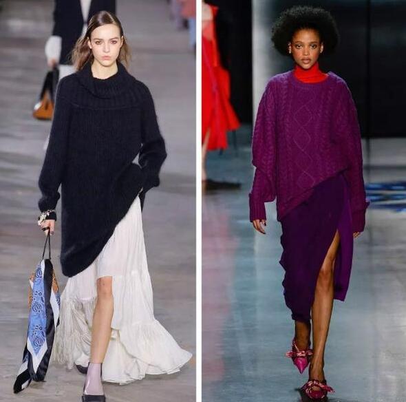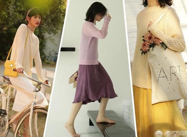 同色系搭配 也就是毛衣和裙子选择相近的颜色(参考上图右),春天呢,可以选一些色彩明媚一点的衣服,比如浅紫色、小男孩蓝、番茄红等等。如果喜欢深色,可以选则带点明亮色的配饰提亮一下,免得整体显得过于沉闷。