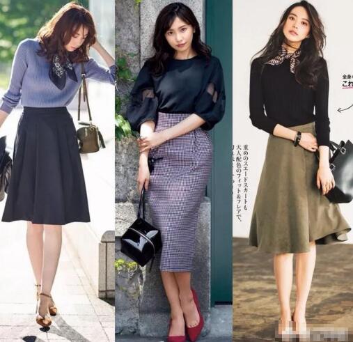 针织衫+半裙:我个人是很喜欢针织套头衫的,材质细腻柔软,而且一般版型较为修身,可以很好的修饰身材,与高腰半裙搭配,会显得很哟女人味。