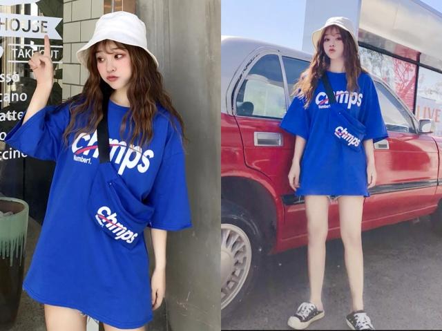 4、小男孩蓝中长版型设计的t恤,整体看起来就特别的显肤白,遮肉超显瘦的,这样的长度可以穿出了下衣失踪的穿搭法,所以对于小个子女生来说也是挺不错的,内搭一条牛仔短裤太潮了,喜欢穿中长t恤的女生,这个夏天一定要入手一件小男孩蓝色,太显白了。