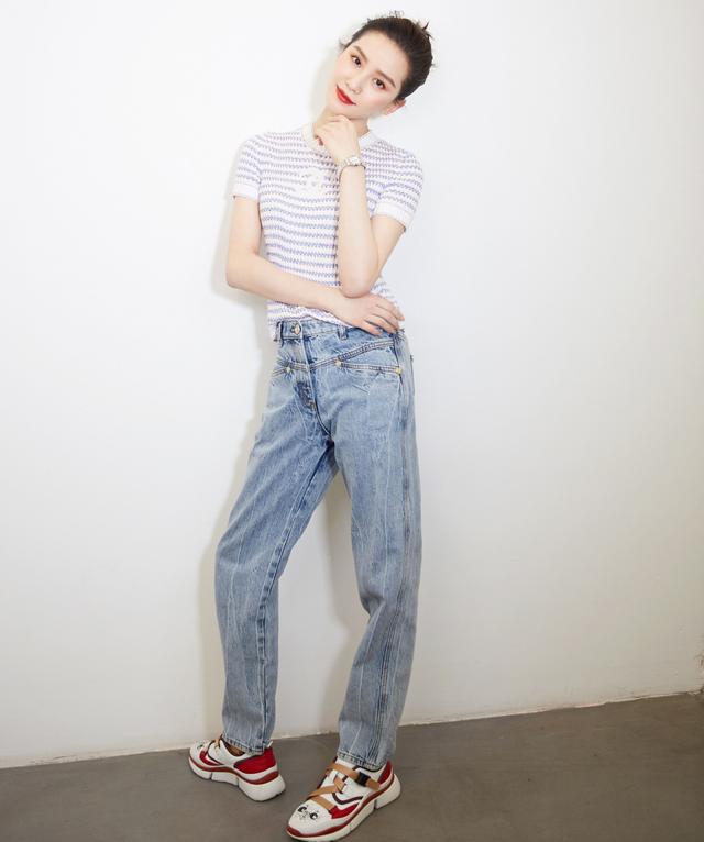 刘诗诗针织衫搭配牛仔裤不掩曲线美,重回少女时代