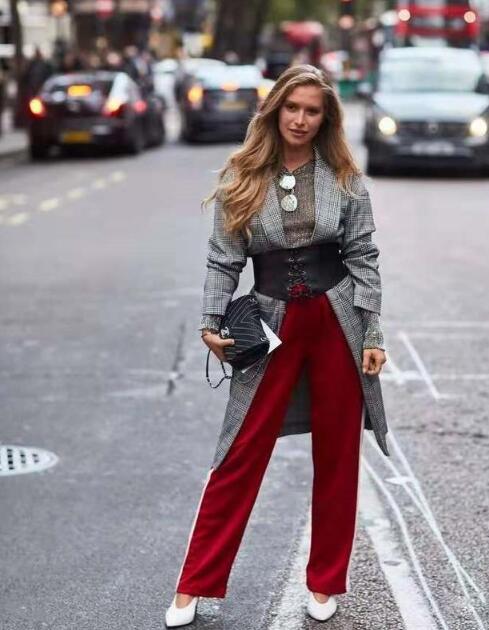 西装外套不仅可以敞开穿,在腰间系起来,也是很好看的。可以凸显小仙女纤细的腰肢。外套怎么穿更有范?简约红色的运动裤 ,修身和宽松结合,极具时尚感。脚上pick白色的鞋子,可以给整体增添一抹明亮感。