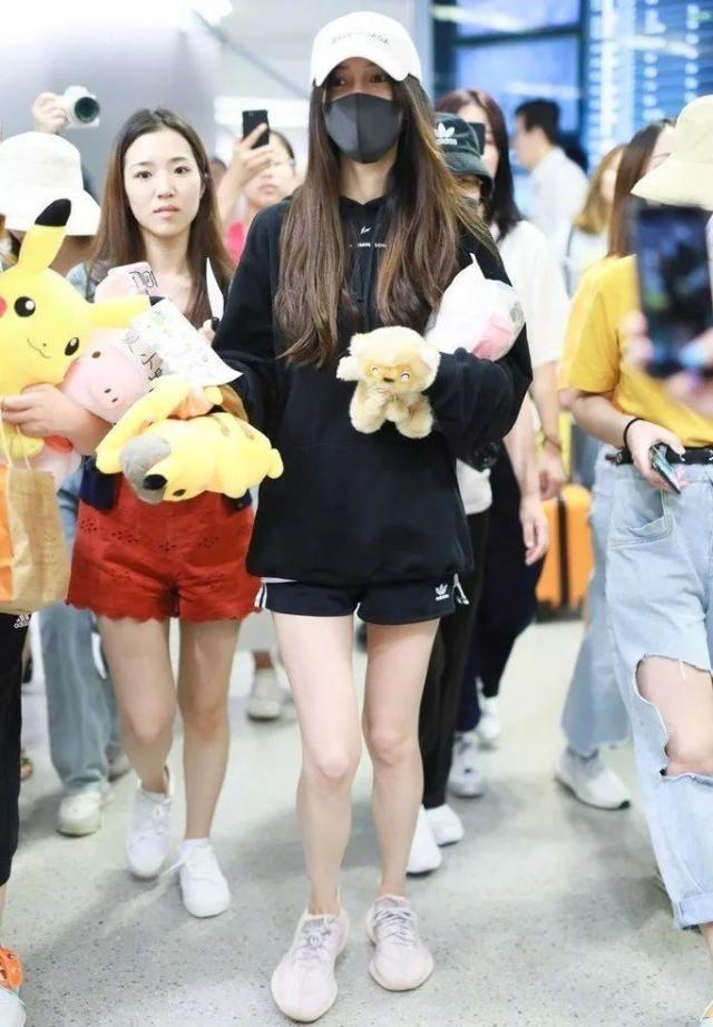 而她的这一套穿搭协调了很多,虽然依旧是下衣失踪的搭配,但卫衣只算是个中长款,再搭配上特别能够衬托出美腿的短裤,更加能够秀出她的大长腿。但在大夏天穿件卫衣,周围还有那么多粉丝包围着,绝对很热吧,不过她可能也是为了防晒,明星就好像不跟我们处在一个季节。
