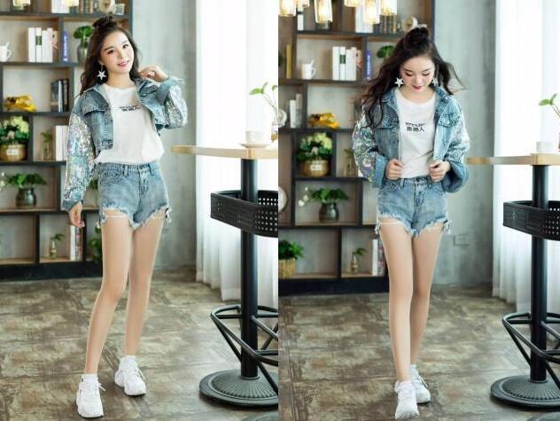 这款是宽松设计的牛仔外套,属于超宽松的版型,所以好多女生都可以轻松驾驭的,而且微胖妹子最喜欢的一款牛仔外套了,两个口袋实用又可以起到装饰的作用,而且牛仔外套最大的特点就是小翻领的设计,搭配牛仔短裤,不同颜色的牛仔全套搭配,随性又显腿长,最好看了!