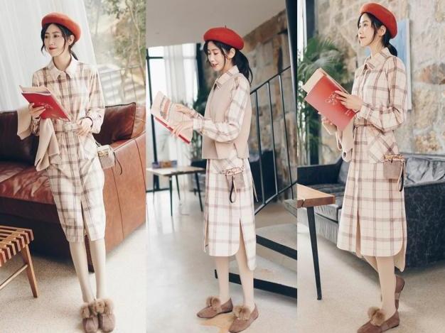 衬衫版型设计的连衣裙在春天穿上最适合不过了,衬衫版型的裙子在一年四季都是那么的百搭,关键还可以很显瘦的版型,微胖妹子穿上也美美哒,格子的元素又很有个性的,内搭杏色打底袜,这么搭就可以获得温暖感了,随意上街都美翻了,再外搭一双毛毛鞋,鞋子是很俏皮的设计,穿上身又暖又美。