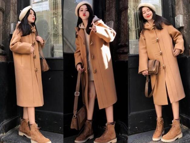 直筒设计的大衣,是今年最流行的大衣款式之一,上身藏肉显瘦,对身材的要求不高,谁穿都可以,羊角扣的设计,摆脱了单调感,看起来青春又时尚,搭配焦糖的颜色,上身更具高级时髦feel,好看不止一点点,如果你不知道内搭什么好看的话,试试搭配百搭又时尚的卡其色卫衣裙吧,青春又减龄,脚踏双同色系的马丁靴,整体效果太和谐,太美了。