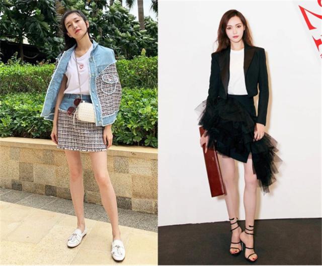 我们最好选择短款外套,能够修饰身材比例,同时不会看起来太拖沓。搭配半裙也更协调。如果你喜欢青春一点,可以选择牛仔外套,性感一点的话,皮外套也是不错的选择。皮衣的材质能够给人很强烈的攻击感,所以增强气场的效果是非常棒的,但同时我们可以选择稍显青春感的半裙,比如吴昕和热巴的这种格纹裙,复古优雅。