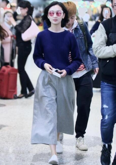 秋冬季是毛衣刷存在感的季节,温暖又不失知性。灰色阔腿裤+小白鞋,洒脱中带有一丝高级感,率性大方又有范,有型又拉风,美得很出众!上装选择藏青色圆领毛衣,秀出迷人的锁骨和天鹅颈,简约中带有一丝慵懒感,少女感爆棚,你学会了吗?