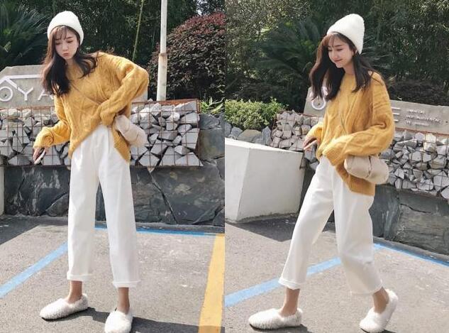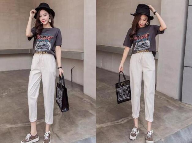 其实萝卜裤是在我读书时代就开始流行了,但那时候的材质没有那么的厚实,而且大多数偏运动版型一些,现在流行的白色休闲裤,这款裤子是萝卜裤的设计,而且高腰配上小口的裤脚,是不是给人带来一种很小清新的女生感觉呢?完全不挑人穿的裤子,怎么穿都很显瘦。