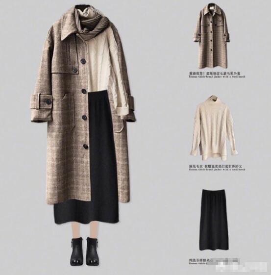 女生冬天如何穿时尚的品味感,穿衣技巧!一件有质感的大衣是少不了的。版型挺括,面料舒适柔顺的大衣一下子增添整体穿搭的质感和品味,今年流行的灰色格纹大衣+米色的螺纹毛衣,搭配黑色半裙,温柔知性的复古风。