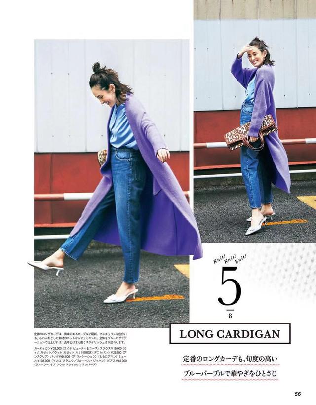 长款的针织外套一直给人一种气质感,可以选择一件纯色的长外套,无论是比较朴素的颜色还是比较亮丽的颜色都能够给人眼前一亮的感觉,搭配一件修身上衣再配上一条阔腿牛仔裤能够使你看上去更时尚。黑色白色是最百搭好穿的,如果不知道选什么色彩,就选其中之一就好了。大衣还可以搭配一条针织的连衣裙,能够更好的展示出女人味,使女人看上去更有魅力。大家选择含灰的色调的大衣更能显出高级感和不俗的气场来。