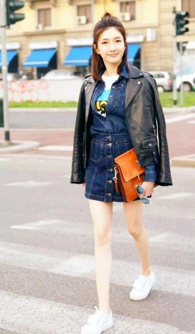 同样也是黑色外套配上小白鞋,但是pick棕色的包包来点缀,效果更佳哟,小仙女可以赚足回头率,你学会了吗?打造一个清爽的半丸子头造型,显得特别活泼俏皮,散发着满满的少女感。这个look很适合周末约会的小仙女。