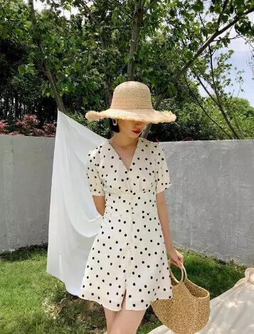 这款就跟Jennie身上的那件有异曲同工之妙,算是闺蜜服。同样用白色作为打底色,显得纯洁无瑕。加上经典的黑色波点,摩登又复古,像极了美国女郎。这款很适合度假的时候穿,配上草帽,休闲又慵懒。