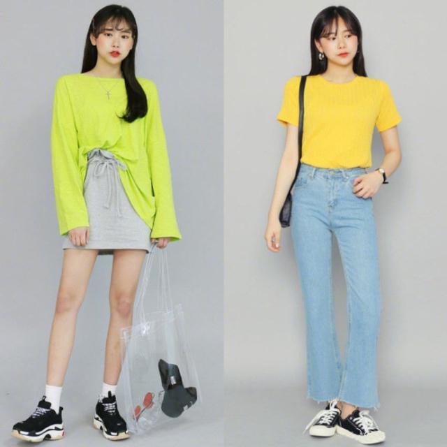 比如宽松的版型的T恤衫,我们可以搭配修身的a字裙以及小脚裤。而面对比较修身的T恤衫,那么我们可以选择阔腿裤以及喇叭裤或者是非常具有少女气质的百褶裙。这就是非常经典的上身下松,松弛有度的穿搭方案。