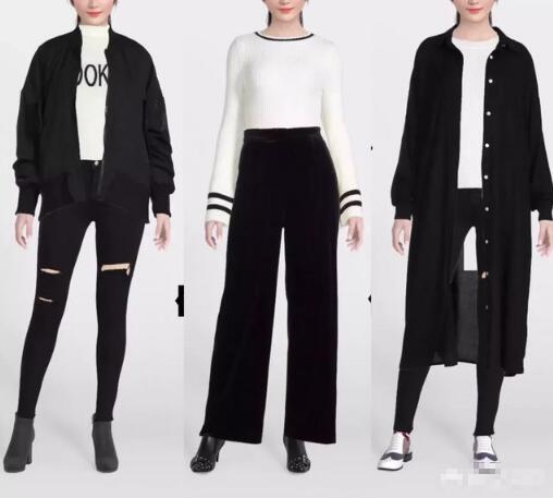 黑白配,想必是每个女生都尝试过的。两种颜色的配色,要以一种颜色为主,另一种颜色为辅助色。面积上就可以体现,比如这一组的配色就是以黑色为主。黑色会有沉闷感,破洞牛仔裤增加了它的透气性。休闲、淑女、简洁这3种造型哪个适合你呢?