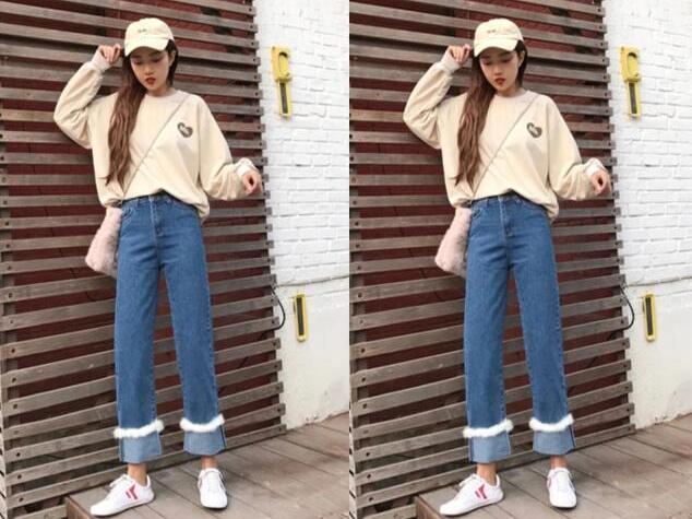 很简单也很好看的一款早春时尚搭配,米色T恤,百搭又时尚,宽松的版型,又是那么的不挑身材,和直筒的牛仔裤的搭配,怎么穿都好看,早春的穿搭,选这款来穿真的很不错,早穿早时髦。